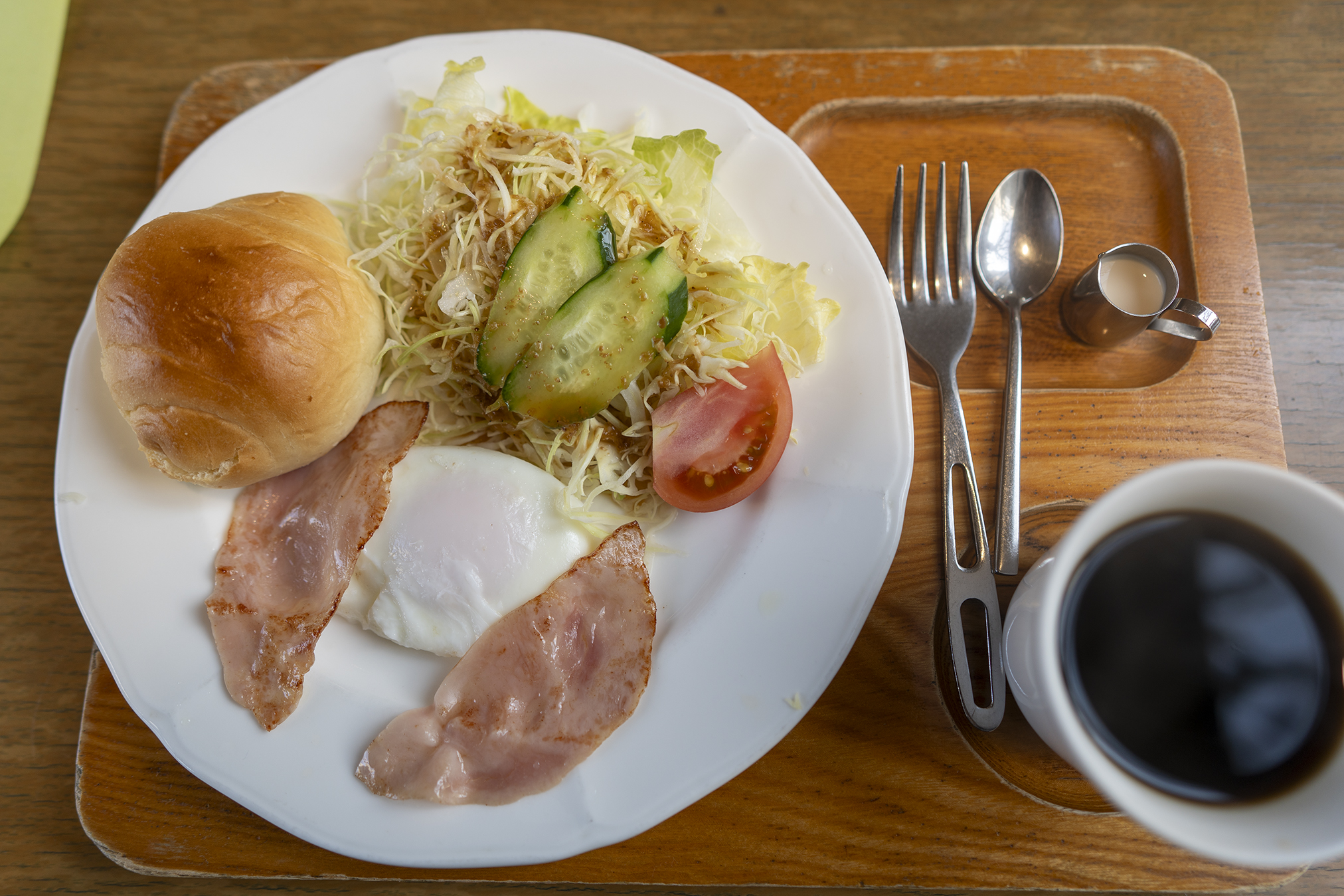 こちらはトーストがロールパンに変更され、ハムが付いてくる。